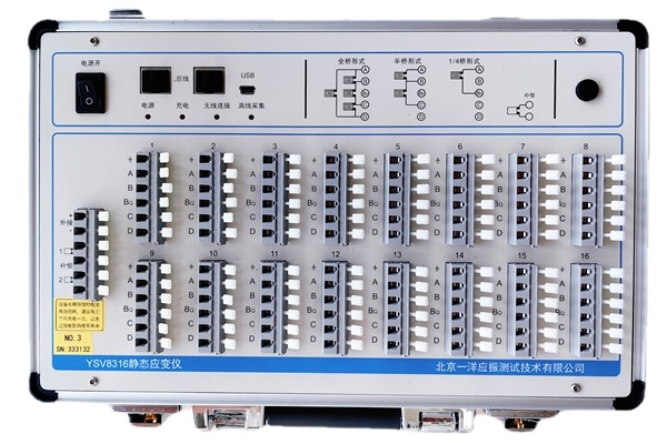 YSV8316静态应变测试系统是适合教学和小型工程的静态应变测试系统,每机16个测点。手动测量时,可用数码管显示通道号和应变值。每个测点分别自动平衡,可用一台计算机直接观察1-100台仪器的测试状态。计算机控制测量时,所有操作均由计算机完成。我们静态应变测试系统稳定性好,抗干扰能力强,广泛应用于桥梁、建筑物、飞机、船舶、车辆、起重机械状态测试。本静态应变测试系统比较适合于教学用静态应变测试,或小型工程的静态应变测试。支持无线功能(选件),无线测量距离500米。