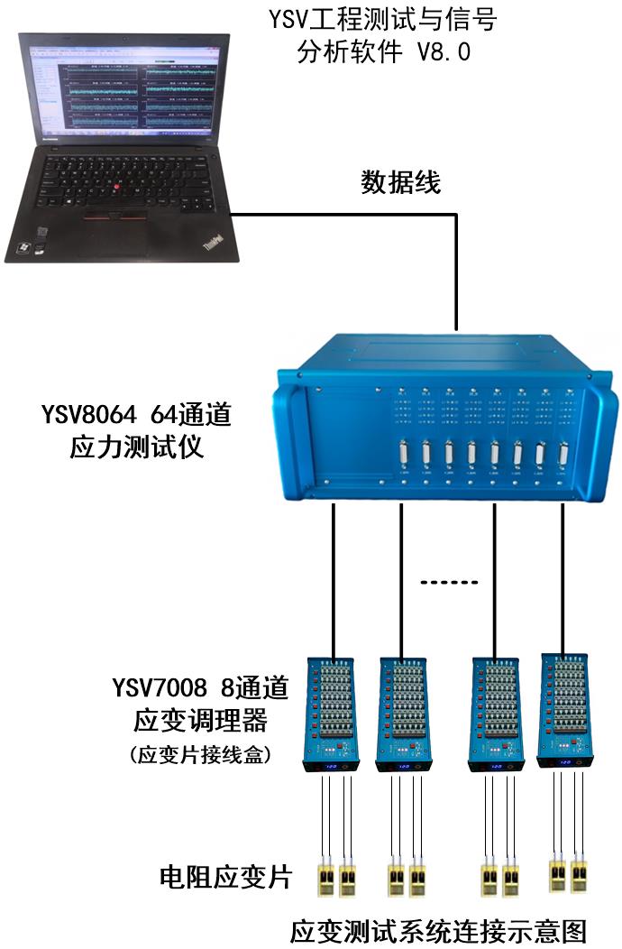 YSV8064 64通道应力应变仪,采用机箱+采集卡的方式,每块采集卡8通道,支持1/4桥、半桥、全桥等应变测量桥路。